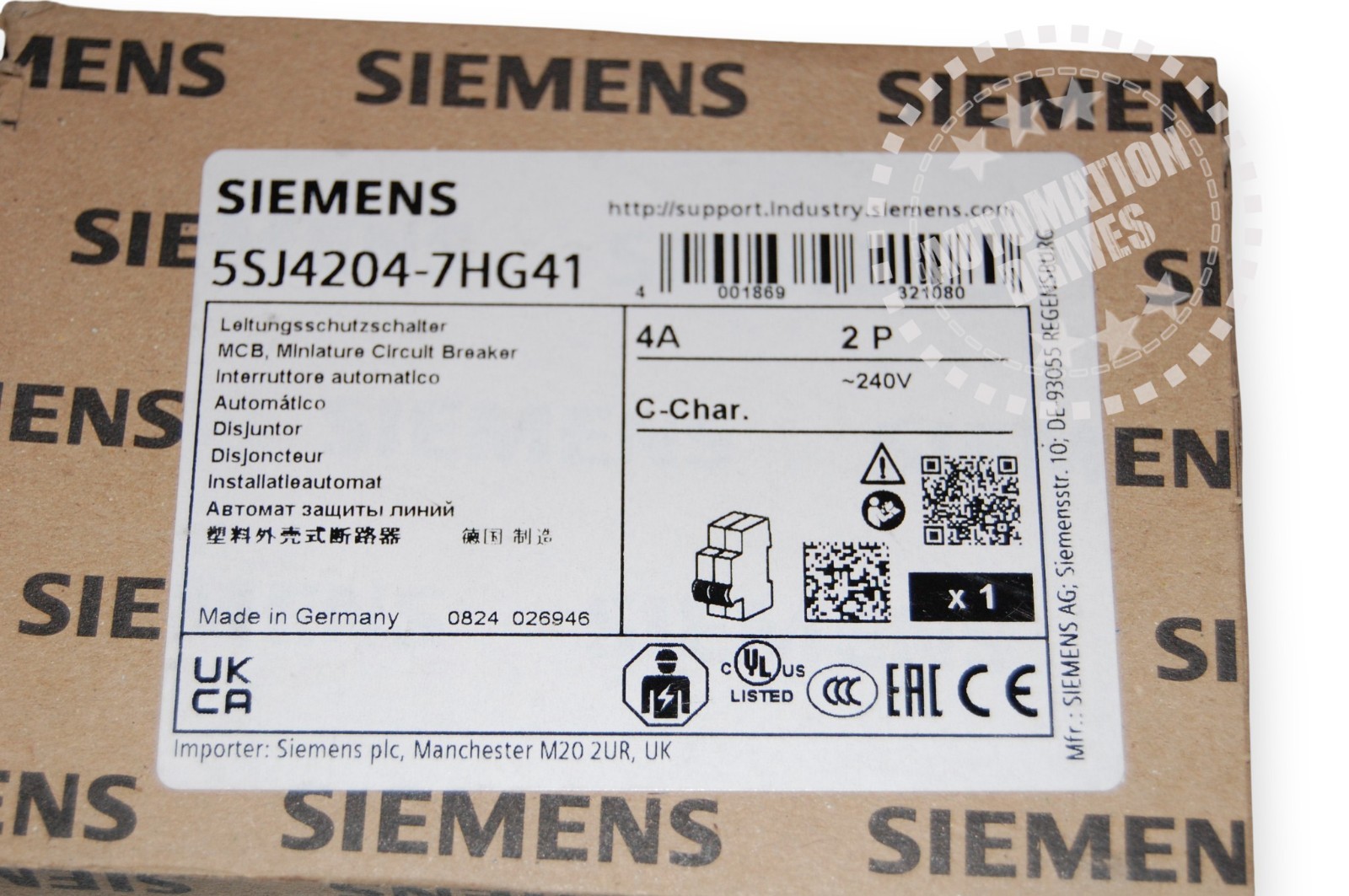 Miniature circuit breaker 240 V 14kA, 2-pole, C, 4A, D=70 mm according to UL 489