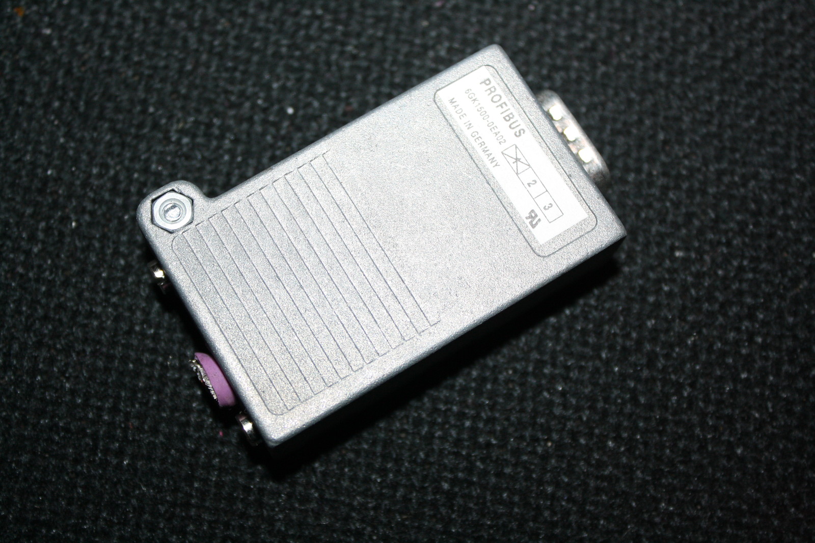 PROFIBUS bus connector with axial cable outlet for Industry PC, SIMATIC OP, OLM; transfer rate 12 Mbit/s; terminating resistor with isolating function, metal enclosure.